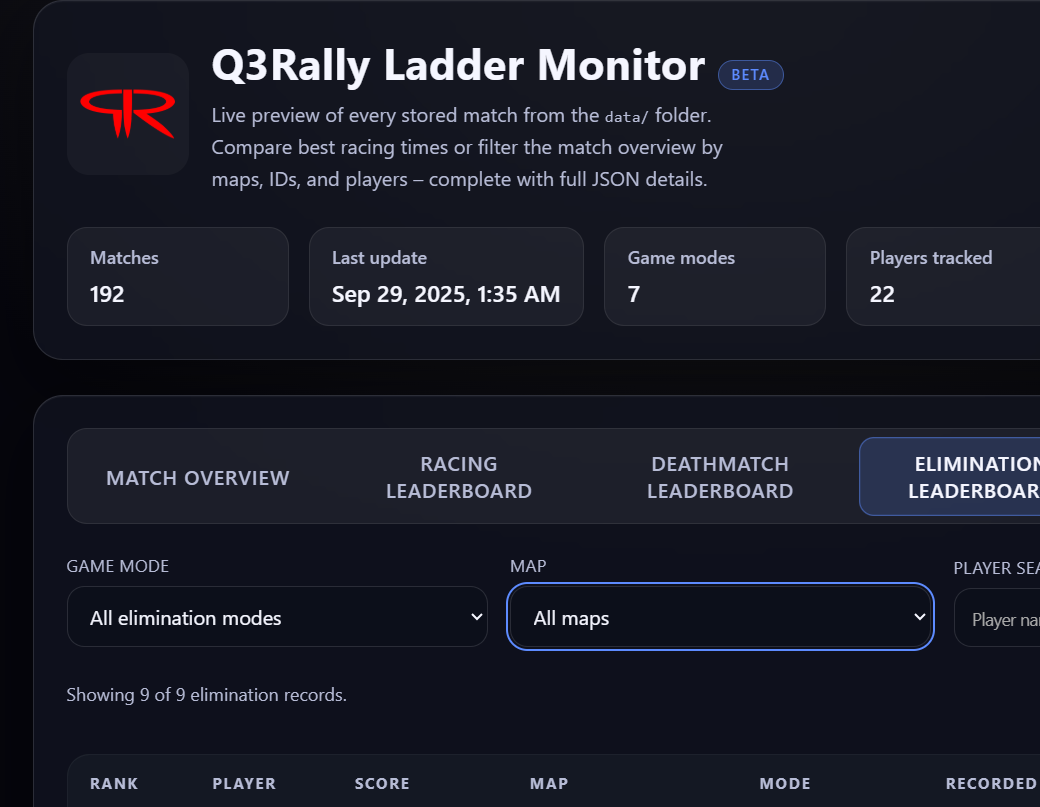 After a long development period, the time has finally come: The Q3Rally Online Ladder is now available!
